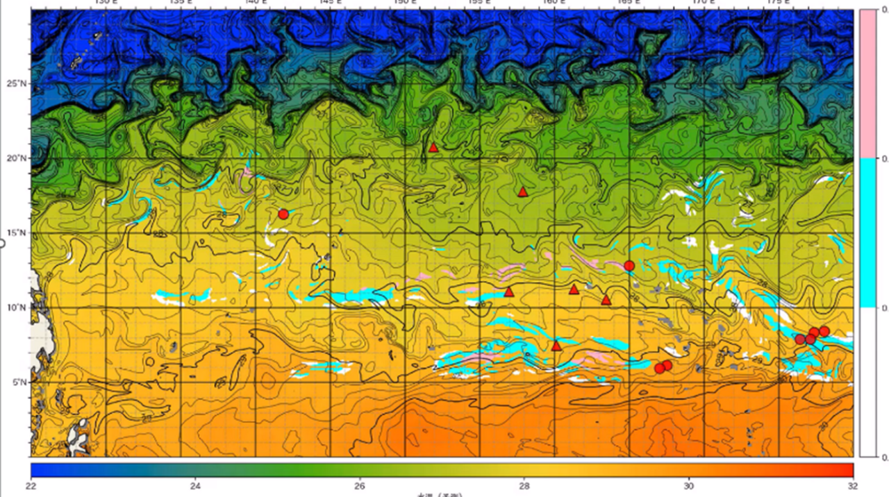 海洋気象学・水産学の分野と情報科学(特に画像を用いたパターン認識技術)との協働によるパターン認識技術の新たな応用として、パターン認識による「良い漁場」を推定する技術を研究しています。
